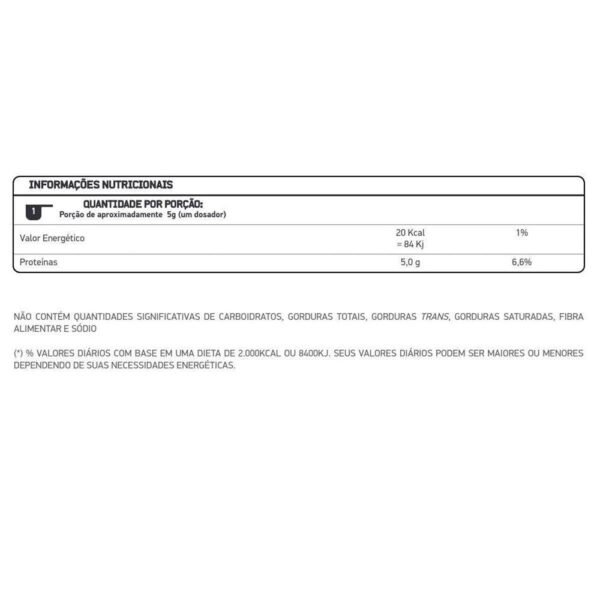 INGREDIENTES: Creatina Monoidratada. O consumo de Creatina acima de 3g ao dia pode ser prejudicial à saúde.