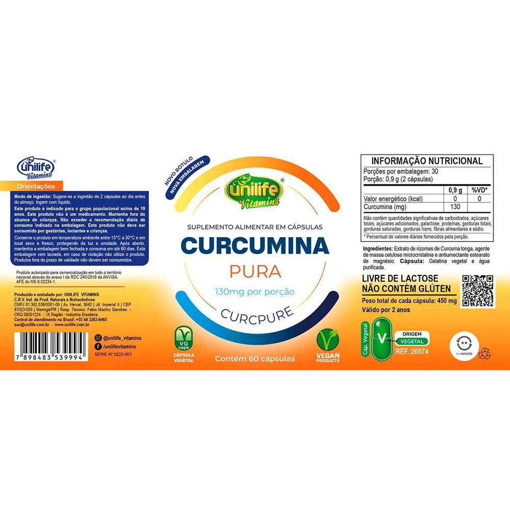 Curcumina Curcuma Pura 60 Caps 450mg – Unilife