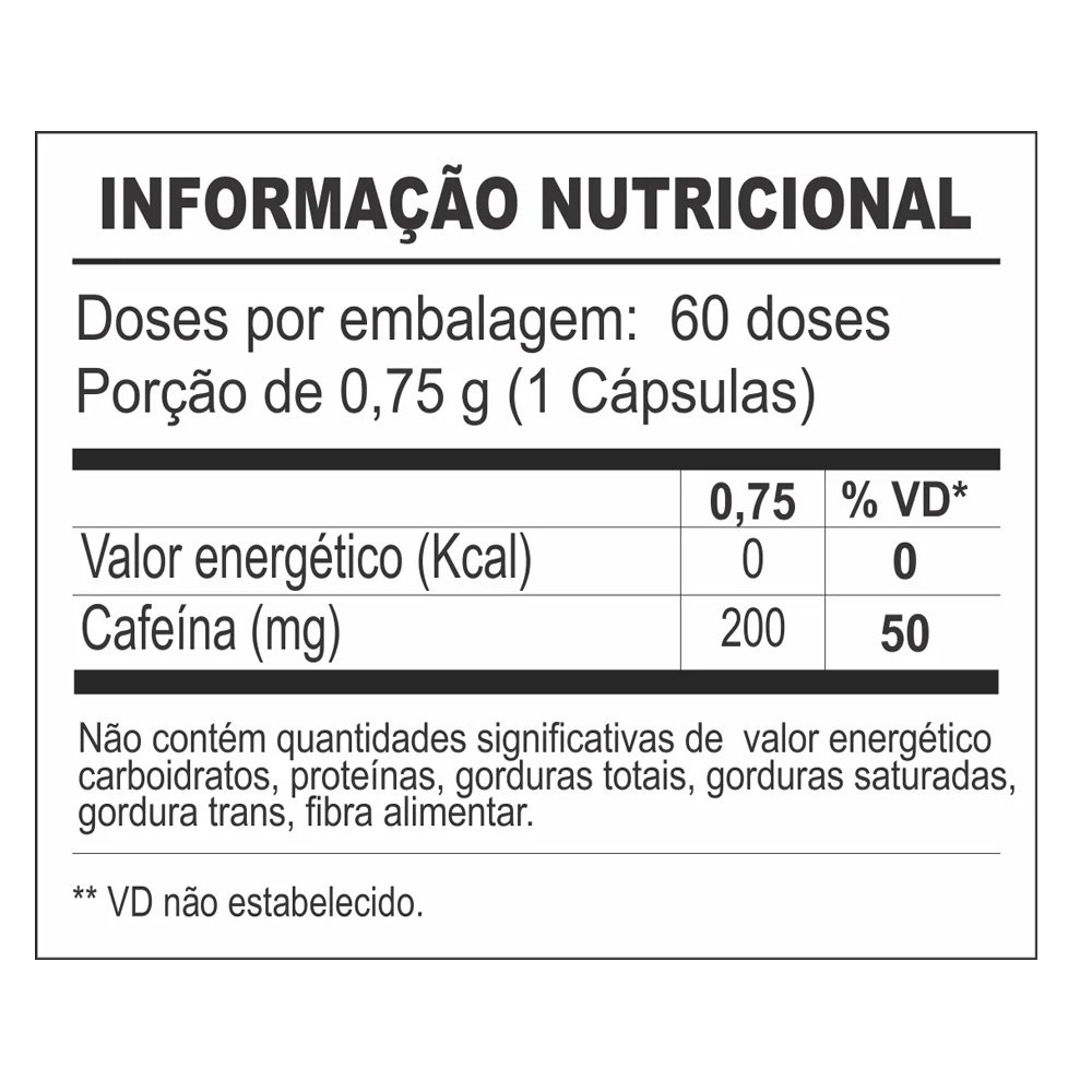 Ingredientes: Cafeína Anidra, Excipiente Celulose e Cápsula de Gelatina
